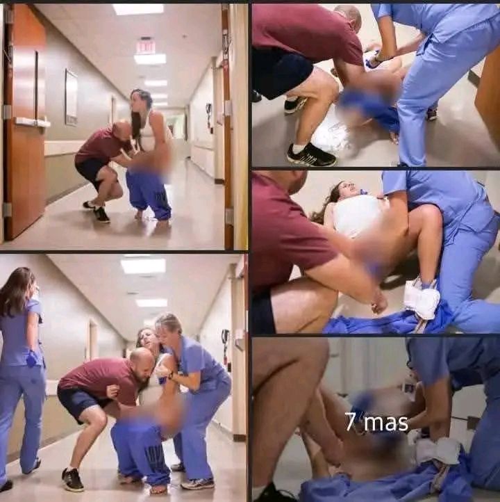 She didn’t make it to the delivery room in time and gave birth right there in the hallway. Hospital staff rushed to help, but the moment was intense and chaotic.
